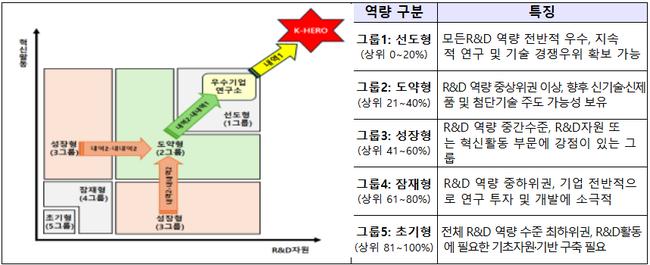 기업부설 연구소 역량진단은 연구개발 자원, 혁신 활동, 혁신 성과 등 26개 정량 지표를 활용해 혁신역량 수준을 5개 집단으로 구분한다. 이를 토대로 역량별 선별지원과 산·학·연 협력 확대, 사업화 연계를 병행해 국가 전략기술을 조기 확보한다는 전략이다.