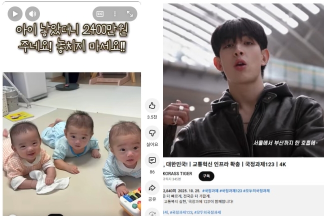 영상 부분 대상을 받은 ‘아이 낳았더니 2,400만 원 주네요! 놓치지 마세요!!’(왼쪽), 영상 부문 최우수상을 받은 ‘새롭게 대한민국!’(강범철·김진영·고원지·서재은)