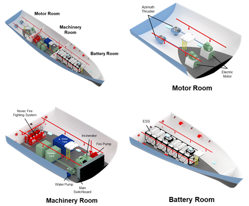 기존 선박을 전기추진선박으로 개조하기 위한 추진시스템 배치 예시